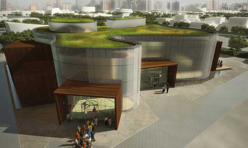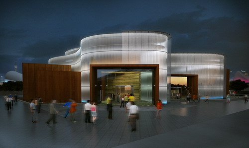 据悉,智利馆的设计理念是一个呈波浪般起伏的水晶杯,又有大海中航船的意象。在造型复杂的钢结构和玻璃墙之外,覆有特制的钢丝网,加上大面积的屋顶花园,可起到遮阳节能的作用。