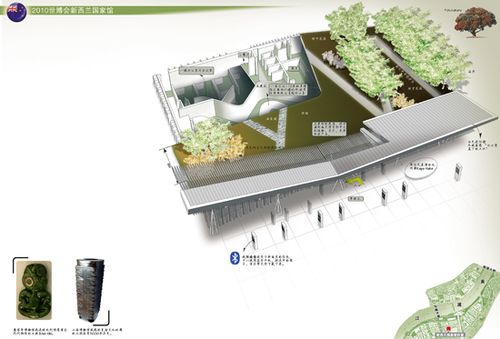 在展馆的屋顶,将布满新西兰特有和常见的植物、水果和农产品。花园呈斜坡状从