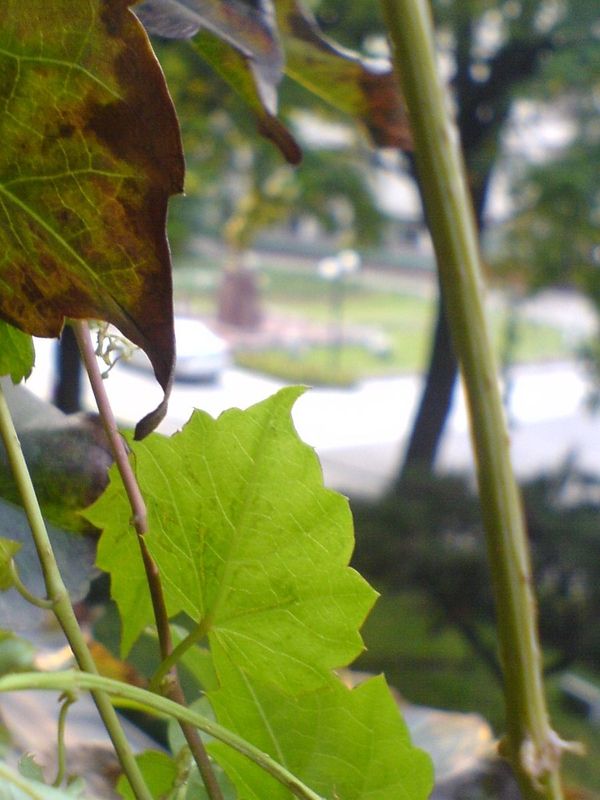 落叶大藤本,具分枝卷须,卷须顶端有吸盘。叶变异很大,通常宽卵形,先端多3裂。聚伞花序,常生于短枝顶端两叶之间,花小,黄绿色。桨果,球形,蓝黑色,被白粉。
