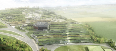 法国Revin的Jean Moulin公立中学的重建工程将由Off Architecture公司与Duncan Lewis Scape Architecture和Jeans Giacinto三家公司共同合作完成。学校位于一个巨大起伏的地域之上,设计师希望在这种具有特殊地形的区域上建造一个新的建筑。设计师将建筑结构融入到多山的环境之中,根据倾斜的地形特点,建筑将逐渐升高,形成一种起伏的图形,希望学生能够从周围的自然环境中受惠。这项工程将在2012年完工。