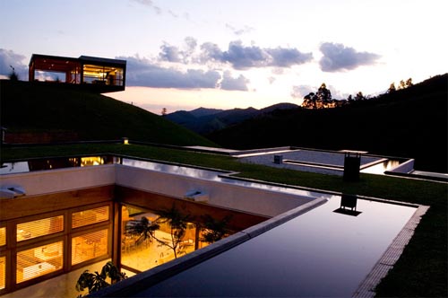 水面似镜面一样宁静,构成了屋顶的一部分,这座由巴西建筑师事务所负责设计的别墅将概念设计演变成了现实。在屋顶有巨大的蓄水池,这些水渠最终都会纳入这个蓄水池中。(中国建筑绿化网编译 转载请告知 )