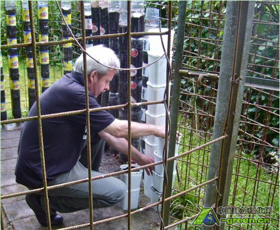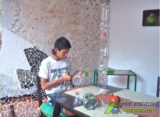 看到一个年轻小伙子为垂直园艺准备瓶罐是件令人开心的事情,以下的图片展示了如何开展瓶罐塔式园艺: