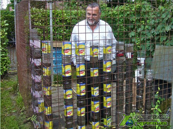 罐塔园艺: Gilbert用塑料罐建造了园艺塔