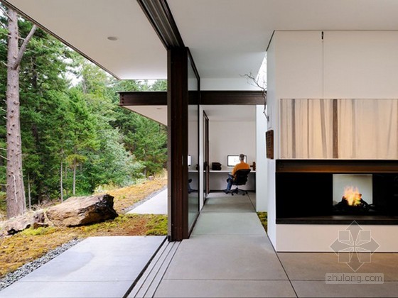 这座住宅建造在山坡上,周围点缀着冷杉,山毛榉,蓟,藓和岩石,这种现代风格的建筑室内的设计材质主要是旧谷仓木、锈钢、苔藓和岩石等。室内设计简单别致,陈设明了,玻璃墙通往户外,进进出出没有明显的界线,室内空间一览无疑。