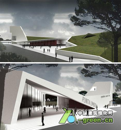 MRDP Arquitectos,一个西班牙设计公司,想创造一个甚至在活动间隙都能保持活泼,最大限度地提高空间的使用率的博览会和展览会空间。他们为Punta Umbria展馆做的设计坐落在城市广场,本地的、耐候性的、低维护的植物覆盖了其屋顶绿化。一个17米的塔作为一个'灯塔',提供河流及其周边地区的景色。