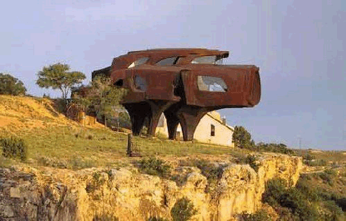 相信这座矗立在美国得克萨斯州悬崖边的铁屋一定会让你一眼难忘。设计者希望它看上去分不清是动物还是机器,看来这一目的是达到了。设计者还给房屋支起四条腿,以减少地面的承重力。
