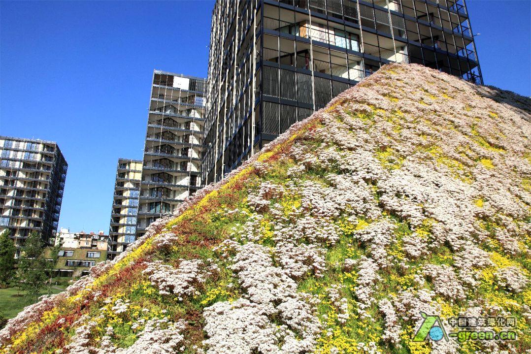 一个建筑师团队设计了一系列的连栋房屋,被放在一个人工的山坡上。你会从照片看到这个山坡由独特的草毯覆盖。郁郁葱葱的花园植物会给你住在乡下的感觉。