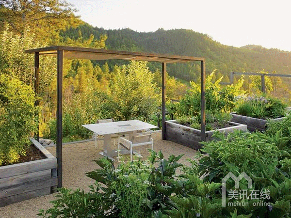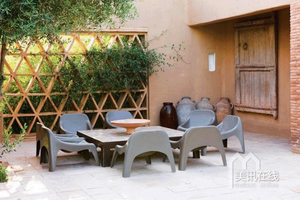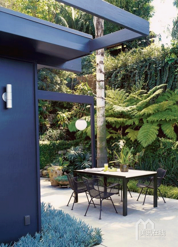 不惹眼的边角桌上放置点饮料,小吃,亦或是几本杂志读物,这宛然就是一个现代咖啡桌。再配上花园水池的叮咚声响,多么美好静谧的家庭花园啊。