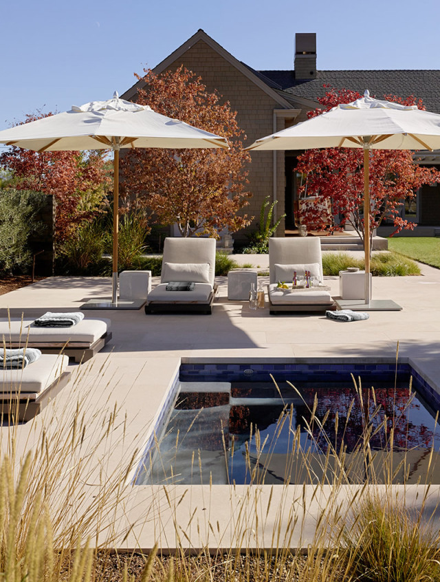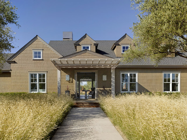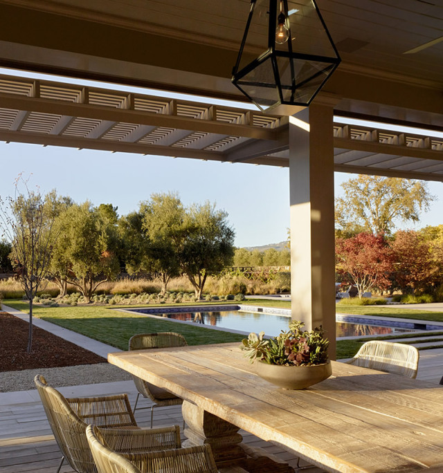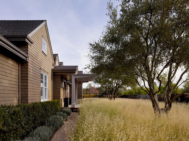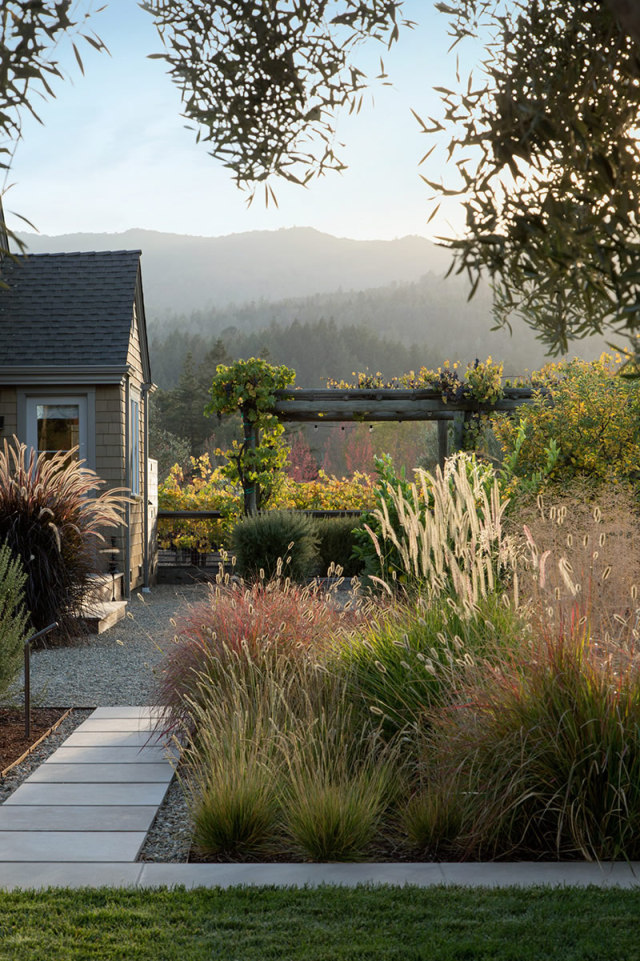 这个田园居所被葡萄园环绕,经历了戏剧性和解放性的改变,将其特性与独特的环境景观相协调。其坐落于葡萄园之中,此前的设计是一处杂乱无章的传统型多年生四季花园,采用了不适合的搭配以及不透水路面。如今,定制的花园则规划出了具有当代气息的精致色调。其与邻近土地环境之间的连接是通过大片的草地,季节的色彩,以及提供了藤蔓与连绵起伏的丘陵的精致的策略性循环流通进行强化的。