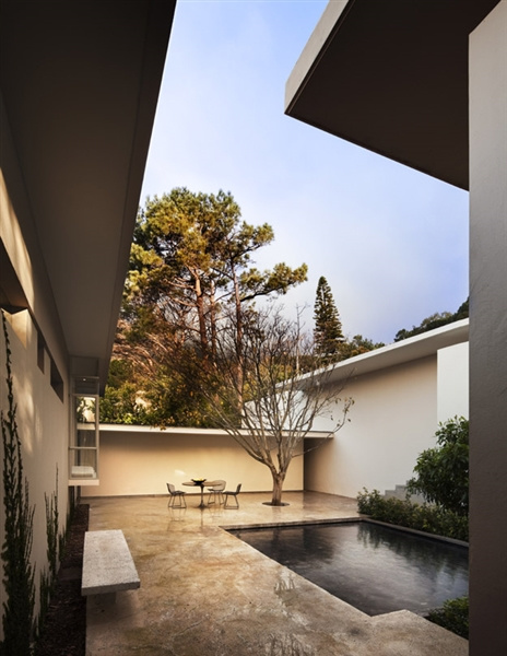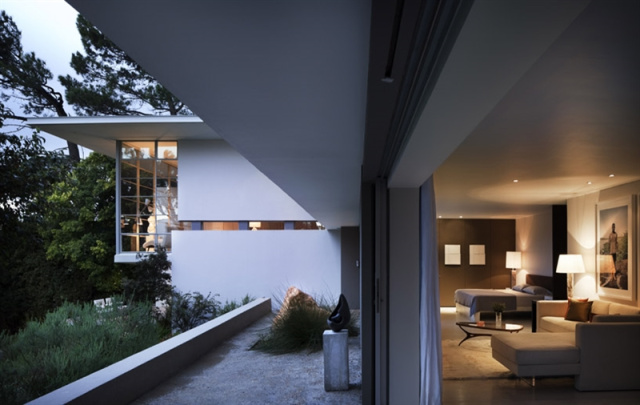 这个在南非开普敦桌山脚下卓越的场地景观,充分地利用了它的稳定而多样的生态环境来整合建筑结构。来自于丰富的本地凡波斯的植被遍布整个花园,展示着这一区域显著的生物多样性。一个天然游泳池和有活力的户外生活空间添加到这一独特的视觉和生活的景观体验中,并将创新、生态稳定与卓越的设计结合在一起。