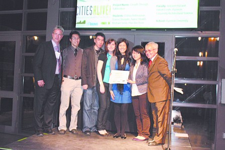 名怀雅逊大学建筑系的华裔学生,以多伦多市中区唐人街为设计主题,他们大胆创意,在唐人街建筑的屋顶上放置有机废物产生堆肥,然后种植蔬菜,从而建立屋顶上的城市农场。这个大胆的创意在最近刚结束的“活动的城市——国际学生建筑设计比赛”中夺得第二名。