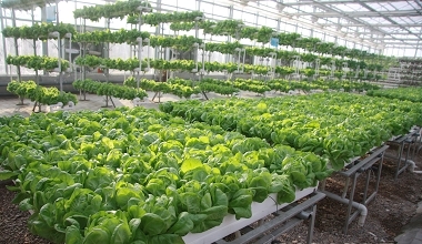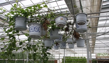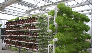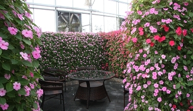 利用柱式无土栽培技术构建的花园餐厅。试想一下,在这样的环境下用餐定会别有一番情趣。