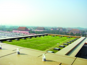 项目部书记刘晓勇介绍,改造后的国博屋顶因为铺上草的“绿毯”,已经成为天安门地区首个、也是最大的屋顶绿地。“要是没有这层‘绿毯’,国博屋顶的防水材料就得干晒着,使用寿命要比现在短不少。”刘晓勇说,国博的屋顶绿化能获得生态、景观、环保、节能和保护建筑屋面等几重收益。如果屋顶外表温度达到40摄氏度,种植卧茎佛甲草的屋顶外表温度将可以低7.7摄氏度,同时降低屋顶内表温度6.5摄氏度,降低室内气温4.7摄氏度。