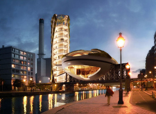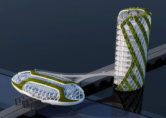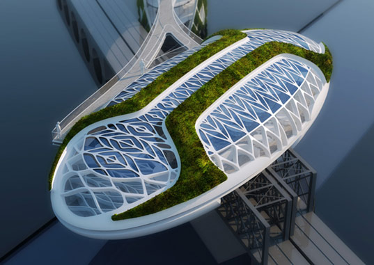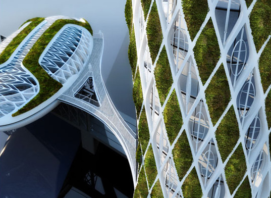 绿色创新,如垂直轴风力发电机,太阳能电池板的屋顶和墙壁的生活和绿化带。不仅能作为一座能源自给自足的建筑结构,其外形也是令人耳目一新的。