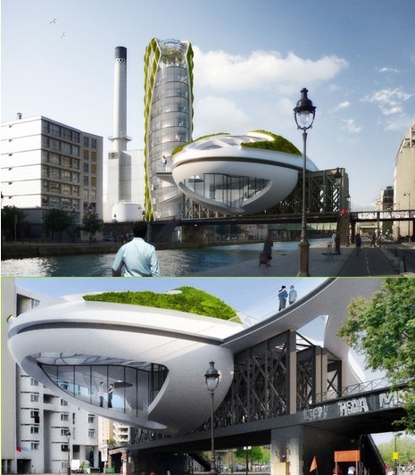 一个椭圆形的结构架设在闲置轨道上。外墙装有二百五十平方米太阳能光伏板和二氧化钛光伏涂层的系统能产生既用电能,而二氧