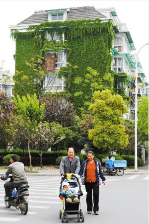 宁波海曙区白云街上一幢居民住宅楼的外墙长满了郁郁葱葱的爬山虎,除窗户外,这幢六层楼的外墙几乎所有空间都被绿色藤蔓占满了。5月9日,楼内一住户告诉记者,墙上的爬山虎是在几年前种下的,如今成了很好的垂直绿化,而且夏日里能隔热、避阳光。