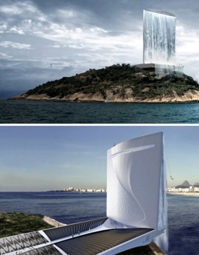 RAFAA建筑设计事务所为2016年巴西里约热内卢奥运会设计的“太阳能城市塔”可在白天利用太阳能发电,日落后再利用抽蓄水系统发电。它的最大亮点当属一个又大又高的瀑布,好像来自天空,给人一种超现实的感觉。发电塔将为奥运会提供大量电量,象征大自然力量的瀑布倾泻而下场面只在特定场合时出现。
