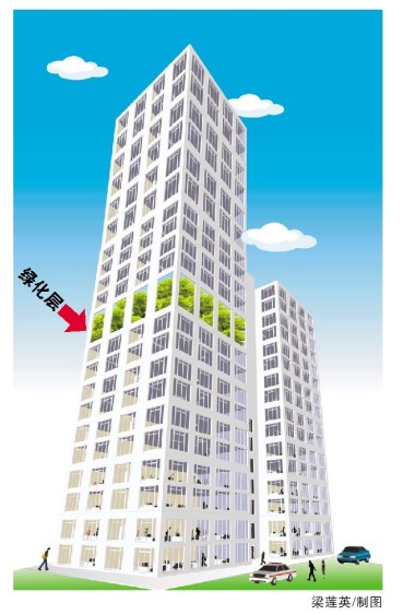 这样的高层建筑安全吗?梁航琳告诉记者,建绿化层并不影响建筑物的承重梁,建筑物的安全性是信得过的。