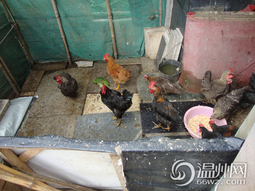 在新田园二组团5幢,一楼一住户将绿化带用大理石板和地毯铺设,圈占10来个平方米。另外,还在靠近邻居家阳台的地方搭了一个2平方米的棚子,饲养了12只鸡。在执法人员的劝说下,屋主动手清理了石板,承诺尽快将鸡处理掉。