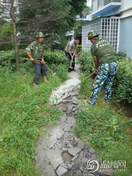 温州市鹿城区城管与行政执法局黎明中队副中队长胡海峰说,6月初,群众投诉举报,新田园一、二组团住户擅自破坏绿化带,28户一楼住户用水泥硬化绿化带,将其占为私用。执法人员向其发放了限期整改通知书,但是大部分住户并没有整改。