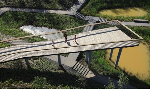 群力国家城市湿地公园悬挑于湿地上空的观景台