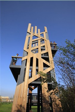 群力国家城市湿地公园内部还设有高耸的观光台