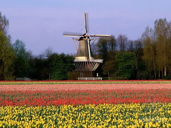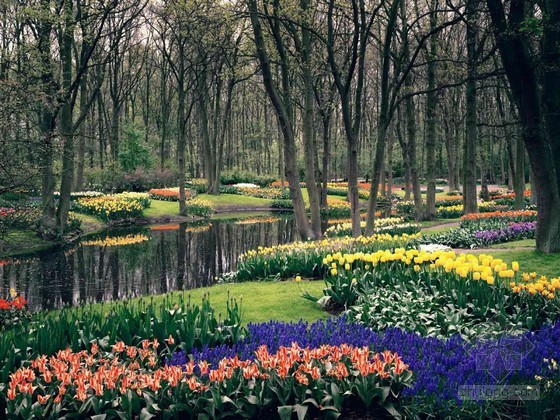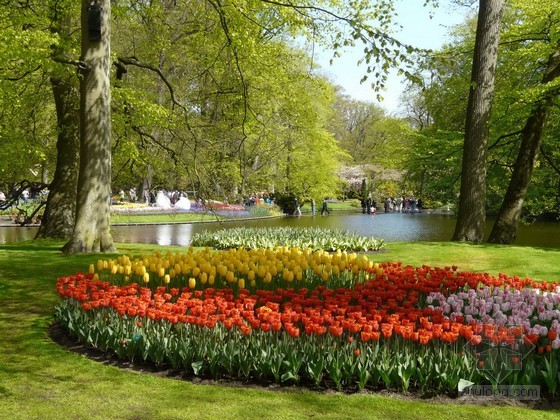 有个美丽的公园——库肯霍夫公园(Keukenhof Garden),它位于荷兰北荷兰省阿姆斯特丹内盛产花田的城市-丽丝(Lisse),占地32公顷,拥有“欧洲花园”的美誉。库肯霍夫公园在15世纪时原本是一位伯爵夫人的狩猎场,后院种植着药草香料等烹调食用的植物,因此将此地命名为“Keukenhof”,也就是荷兰文的keuken(厨房)和hof(花园)合起来的意思。1830年库肯霍夫的景观设计以英式风格为主而初现雏型,直到1949年一群花农将库肯霍夫此地规划成一个开放空间的花卉公园,至今已成为国际知名的花园典范,也是民众来荷兰阿姆斯特丹赏花的热门观光景点。每年3月初至6月,在这个世界上最大的郁金香公园所在地库肯霍夫会举办盛大的郁金香花展。