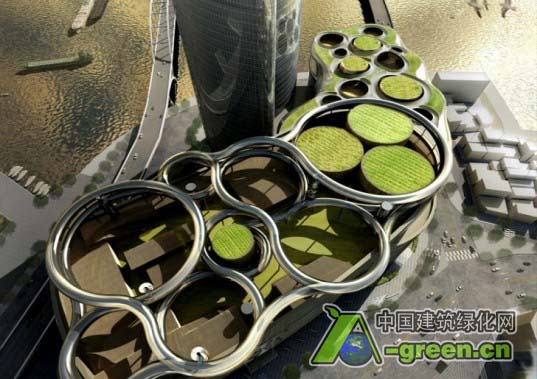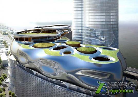 釜山乐天世界大楼,最初是由SOM设计,目前正在建设,已经准备进行大的修整。多用途的110层塔楼和零售中心的开发人员已经确定原来的屋顶花园是该项目的不足之处,所以他们已经聘请Yamasaki Ku Hong Associates Design Lab (YKH)设计更新,作为丰富游客体验的一种方式。 YKH已经创建了一系列可循环的草坪以及由可循环的通道连接的屋顶甲板。新的空间,叫做“Way- Pod,”将增加零售面积,并增加多种方式,供游人欣赏屋顶空间。