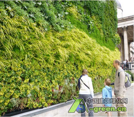 这是伦敦特拉法加广场的第一幅生态画,而且可能是世界第一幅生态画。一幅梵高的画已经变成了一个绿色生态垂直墙。描绘梵高的画,A Wheatfield with Cypresses,是一个吸引人们进到国家美术馆参观真迹的新方式。