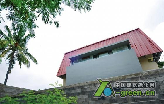 住宅位于雅加达郊区,因为水库的原因,场地只剩下百分之五十可以利用,这也为设计师提了个醒,那就是要最大限度地利用场地环境。对于自然和场地的重视形成了一个帐篷形式的屋顶,树木的自然美感创造出与深红色屋顶的强烈对比,但它看上去还是很养眼。屋顶上的环保回收金属材料呼应了可持续生活方式的概念。总体看来,设计通过形状,材料,颜色,室外空间的细节,室内室外的自然过渡等,成功地反映了客户的需要和想法,因此可以说它是独特的温暖的热带住宅的典范。