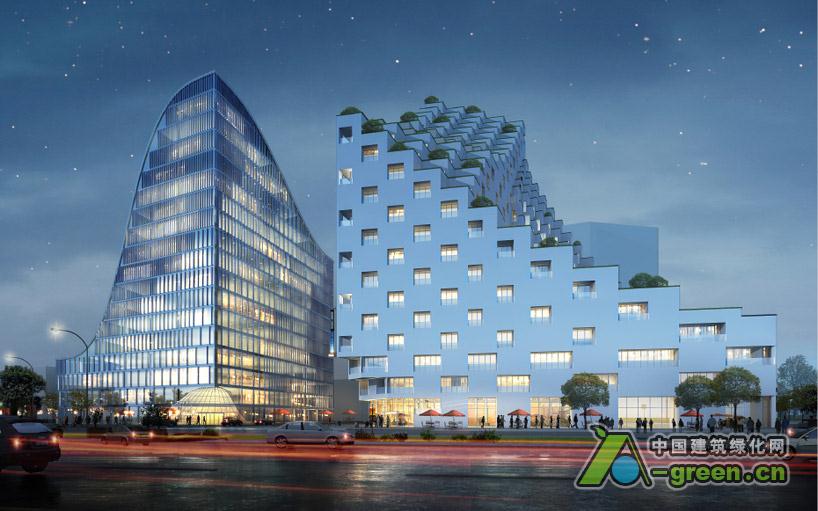 JDS建筑公司创造了在竞争中赢得胜利的建议——“杭州波浪”,位于中国杭州新天地区的一家豪华的拥有酒店和办公楼的综合性大楼。背靠背的竖立着,这一对结构在形式上反映彼此,给每个“卷”打开了中心空间,这个“卷”给每个建筑物的核心引入自然光。