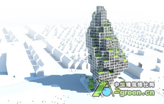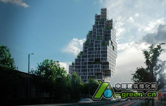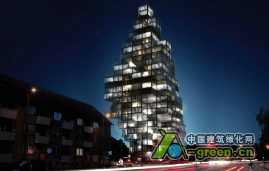 VRDV 和ADEPT一同赢得位于丹麦.哥本哈根的一个独立的市的塔式高楼的设计竞赛--“天空村”,116米高的摩天大楼的住宅村庄。设计的基本结构是一个灵活的框架,每一个“点”(或称为“单元”)是60平方米,这些“点”围绕着中间的核心筒。几个“点”可以融合为一个较大的住宅套型。大楼的底部是公共空间:零售、餐馆和办公室。大楼中部向北凸起,南向的“梯田”上布置各式各样的“空中花园”。大楼的设计反映了哥本哈根当地的历史,将高层建筑融合进城市的天际线。