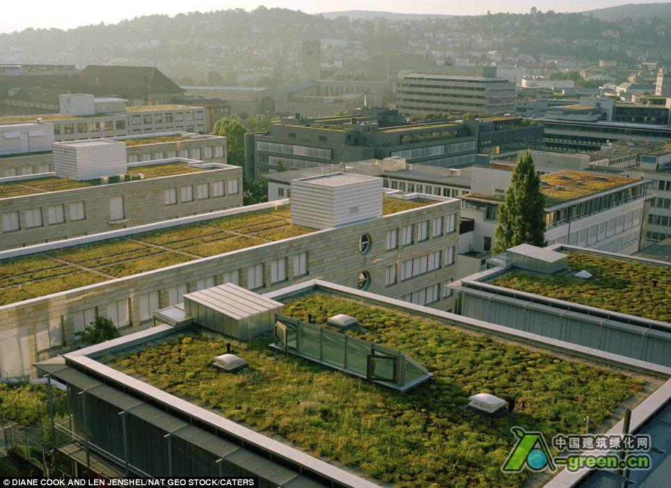 花园覆盖了德国斯图加特的屋顶,自1989年以来,市政法规要求所有新的平顶建筑物需要有花园