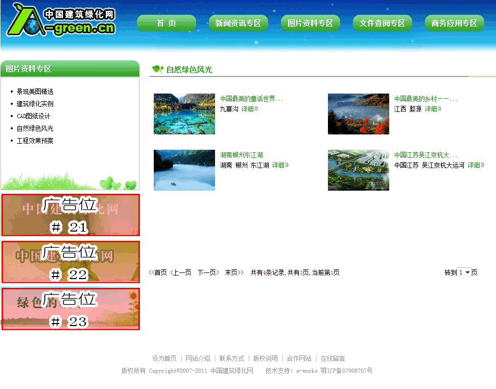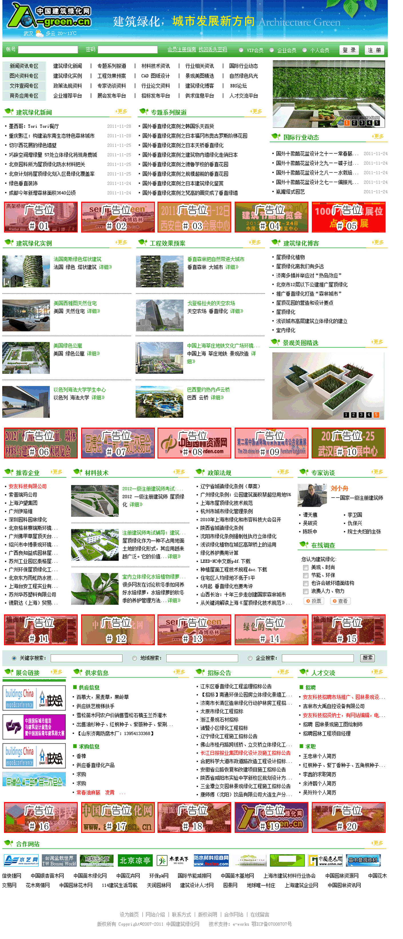 中国建筑绿化网(http://www.a-green.cn)于2007年组建,到目前为止,是建筑绿化行业在中国地区的唯一一个综合性专业网站。在2011年即将远去,2012年即将来临之际,中国建筑绿化网迎来了全新改版,在页面设计、栏目划分、动态交互、分享收藏、首页广告、会员制度等方面做出了大幅度调整。新版中国建筑绿化网欢迎新老用户多多关注,提出宝贵的意见和建议;欢迎各大企业成为企业会员,享受企业会员的服务;欢迎各位网友关注中国建筑绿化网的新浪官方微博:http://weibo.com/aagreen;欢迎同行网站和展会互换友情链接。另广告位正在火热招商中!相信中国建筑绿化网的全面改版升级会带给大家全新的感受!