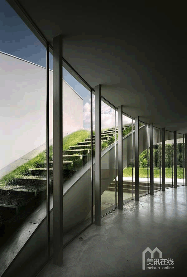 在一切就绪准备动工时,委托人又为建筑师提出了一个新的要求,那就是要设计出一个小的录音室和暖房。对于暖房的设计,设计师通过绿色平板上的“切口”并将其向下“折弯”,使得葱绿的屋顶和第一层连接起来,从而在住宅的内部形成一个暖房。这样的设计将屋顶变成了一个中庭,并且只能通过住宅内部到达中庭。