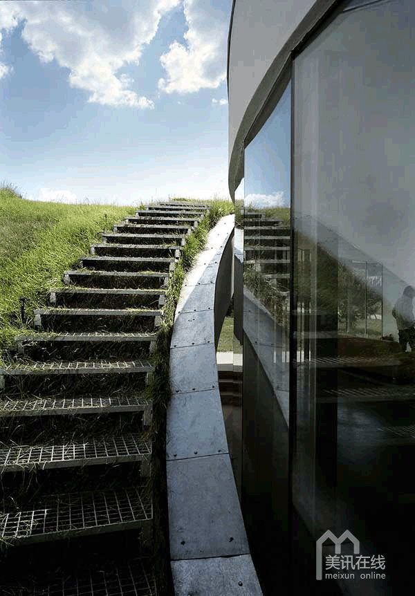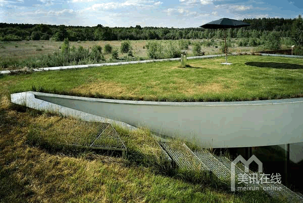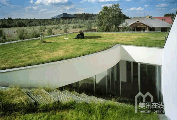 OUTrial别墅周围绿色环抱、景色宜人,独特的绿色住宅设计使得这座面积为180㎡的建筑与周围的景观天衣无缝地融合在一起,浑然天成。为了使别墅的建造对周围环境的冲击降到最小,来自KWK Promes建筑事务所的波兰建筑师“提升”了这片绿色场地中的一部分,使其成为住宅的屋顶,从而将住宅的顶部和美丽的自然景观完美地结合在一起。