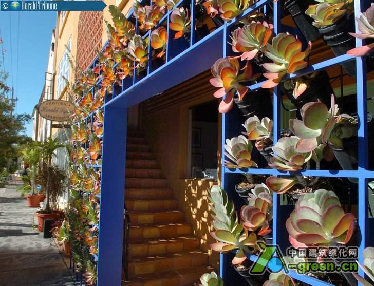 萨拉索塔景观建筑师丹恩.斯宾塞整天听到有关惊艳的长寿花绿屏的评论,这个绿屏是位于北橙大道上他的办公室前面的墙以及入口。 他把容器和灌溉系统安装在一个紫色的框架上,与阔叶长寿花的浅绿色和红色叶子进行色彩对比。除了醒目的视觉效果,这个生态墙还可以过滤阳光,减少热量,并保护隐私和消减噪音。它“迎接”到办公室的游客,而且说明了景观设计的一个方面。 【详细内容】