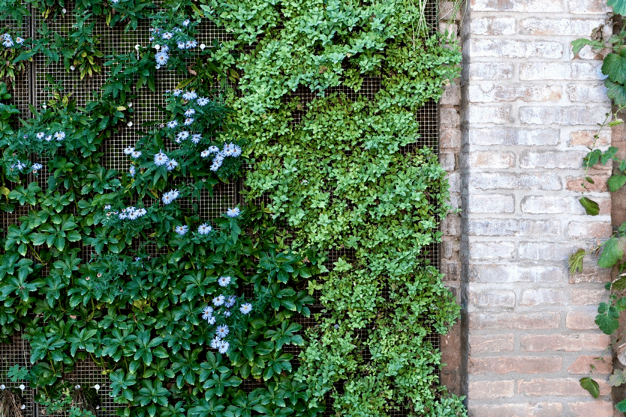 Optigreen墙壁花园系统被安装,创造了一个美丽的垂直花园,有一个非常舒缓的效果。旧围墙尚未完全种植,如此,一些在墙上的砖砌建筑元素可以被房主观赏。