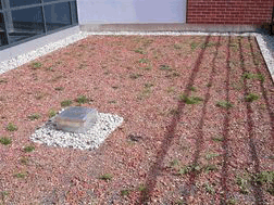另外因为取代了自然土、人工轻量土之类的土壤,采用了砖的废弃料,从城市产出的废弃物进行再利用的思考方法建造的屋顶绿化,据说因此就不过多的在意美观度了。