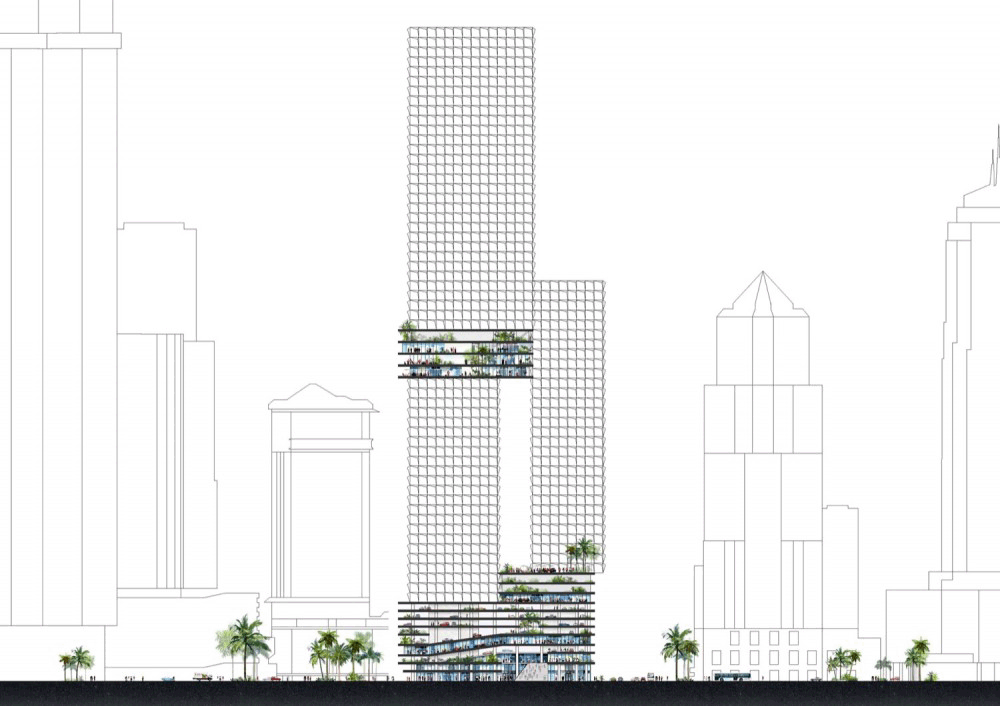 奥雷-舍人公布了一个位于吉隆坡市中心的标志性大楼的设计方案。这栋高度为268米的建筑将会成为马来西亚多元文化社会的象征。1998年,吉隆坡因为建成至今仍是世界最高的双塔摩天楼双子塔(thePetronasTwin Towers)一度成为世界关注的焦点。今天,马来西亚将以一座令人惊艳的新建筑再次亮相世界舞台,此建筑将改变人们对摩天楼的传统认知——展示摩天楼如何突破;摩天楼如何引入城市活力;摩天楼如何融入城市的景观之中。