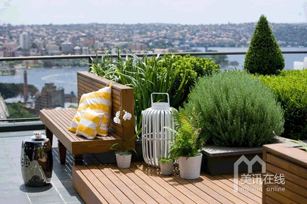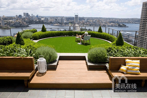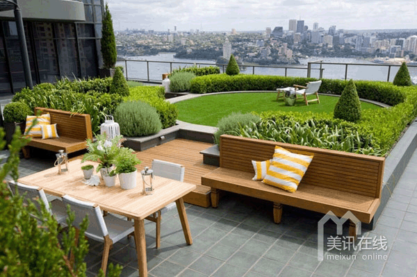 花园整体呈圆形,外部摆放的木质家具为整个花园烘托出了一种闲适怡情的氛围。从花园中可以俯视整座悉尼城市,美丽迷人的景观尽收眼底。