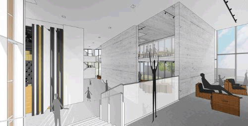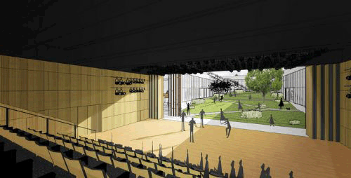 除部分需要私密的空间外,大多数空间开放而流动成就了它们使用的多变性。同一个空间在不同场合下可以演变成不同的功能空间。例如:最大的多功能空间可以成为小型体育馆,中型演奏厅,电影院,大型晚会以及户外演出舞台。建筑中心的内庭院,不仅是全年的景观,同时也可以成为观众席来观看多功能厅的演出。