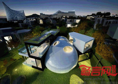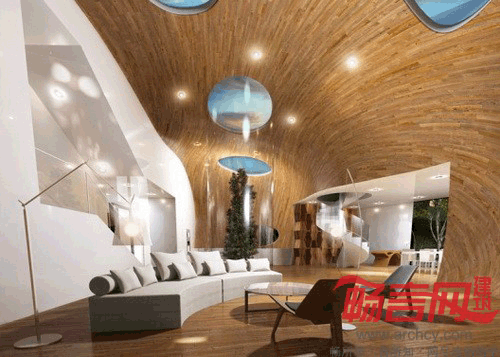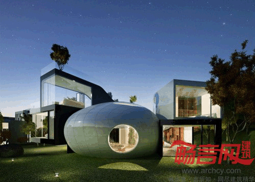 根据设计方案,“蚕茧”位于整栋房子的中间部位,设计师依照蚕茧的椭圆形状设计出了这个生态环保结构,它既是对两边房子室内空间的保护,也能使其向外部的延伸。“蚕茧”的圆形窗户是可以根据气温和湿度条件开关自如的,这俨然就是一个活的蚕茧。