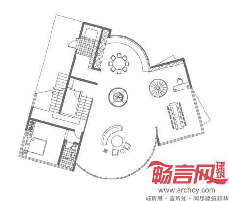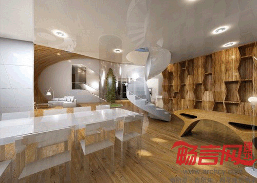 “蚕茧”的内部结构没有明显的线条感,地板、墙壁和天花板之间的界限都被淡化了,使得整个空间更具神秘感,而且也有多方面的用途,比如可以用于私人展览和聚会,还可以作为图书馆使用。