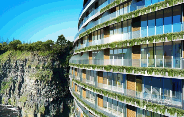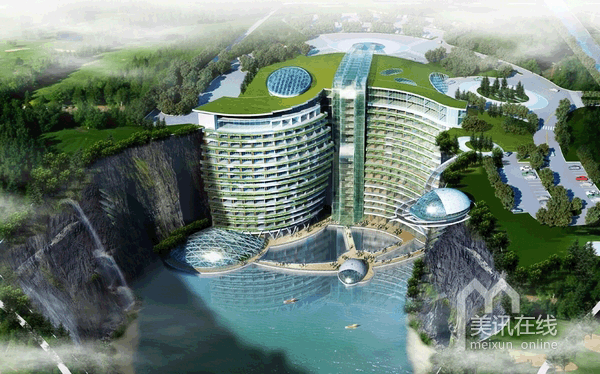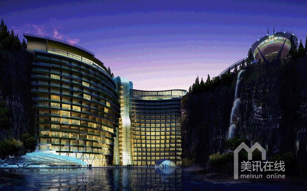 由英国建筑事务所Atkins设计的上海洲际世茂仙境酒店目前正在紧张的建造当中,该酒店位于上海市松江区,酒店的建造旨在丰富日渐稀少的人造景观。酒店高17层,地基高出地面两层楼的高度,其中大多数度假商业风格的酒店都位于这座高80米的建筑中。升高的入口随着由玻璃围绕的河流开始上升,之后随着地势的走向,流向悬崖边,成为一个瀑布景观,这里也是该建筑的垂直循环通道。