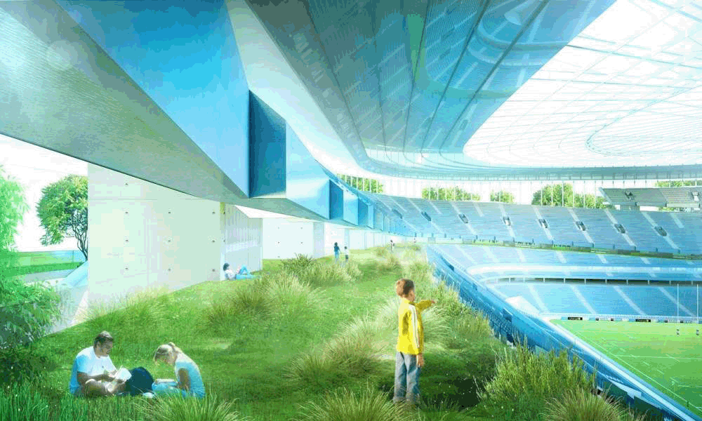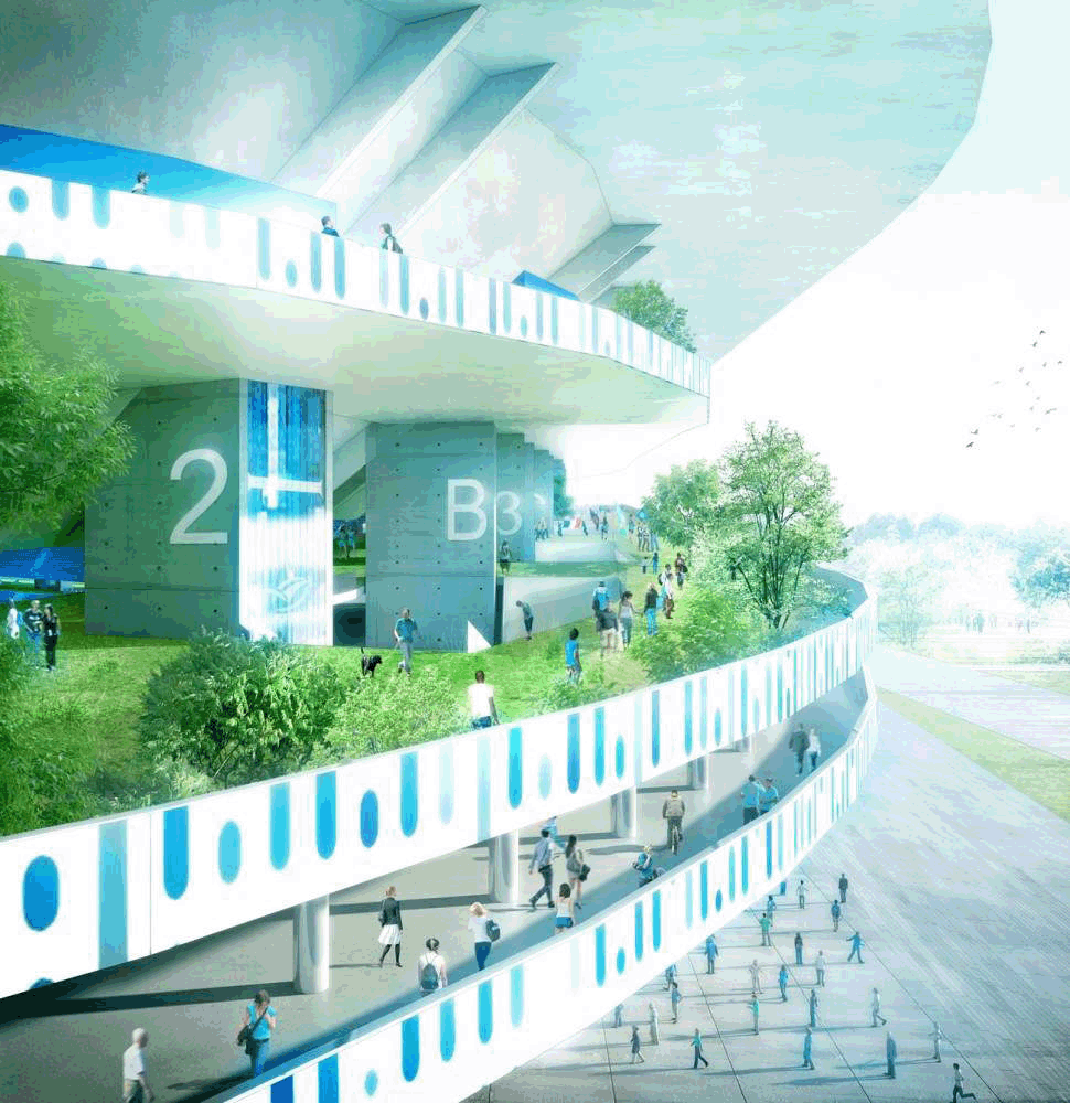 该概念体育场不是一个95%的空舞台,这是一个公共空间,可举办体育赛事,也是一个比赛日以外的目的地。双坡道可提供多用途的活动空间,游客可以在外面突出的体块中自由活动(躺,坐,野餐,阅读,跑步,打球或羽毛球)。概念是体育场是一个亲近的空间,将用作日常使用,周三和周末下午晚些时候人尤为多。该球场也是一个公园,将参与城市生活和体育场的吸引力,以提高城市规模小的公共设施。公园将是一个放松的地方,设立许多体育和文化活动。
