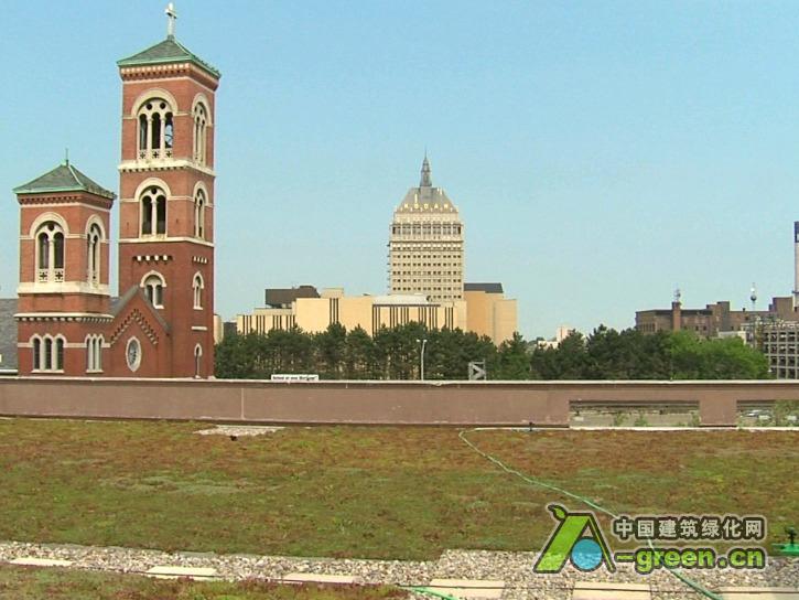 景天植物坐落在土壤约4至6英寸之上,底下有灌溉系统来疏通径流。除了几乎消除雨水径流污染,这个屋顶绿化也有望节约城市水电。