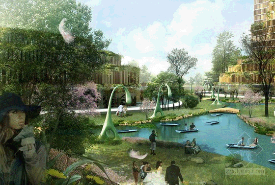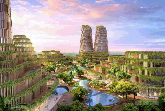 这是L**A建筑事务所设计的深圳森林广场项目。项目设计上遵循能源完全自我维持发展的宗旨,建筑中将包括一家五星级豪华酒店,SOHO住宅,高档时装零售,城中村和绿地。设计充分利用深圳的热带气候影响。通过集成一个人工的水资源循环利用系统,设计融合当地山区的峡谷和自然水系因素于一体。亚热带植物,茂密的丛林树叶和梯田,创造出一个郁郁葱葱的环境。设计将回收利用融入到建筑当中。建筑物的外墙全部挂满树叶枝条,从而实现自然和建筑环境的统一。可持续发展的功能包括雨水收集,水资源采集的花园和太阳能百叶窗,它能随太阳的方向调节反射角度,保持建筑物的室内凉爽。综合交通系统,包括连接各建筑物的缆车使整个项目地域之内实现无车交通。在地面,设计通过木制的人行天桥和湖上的摆渡船实现相互连接,达到交通的便利。