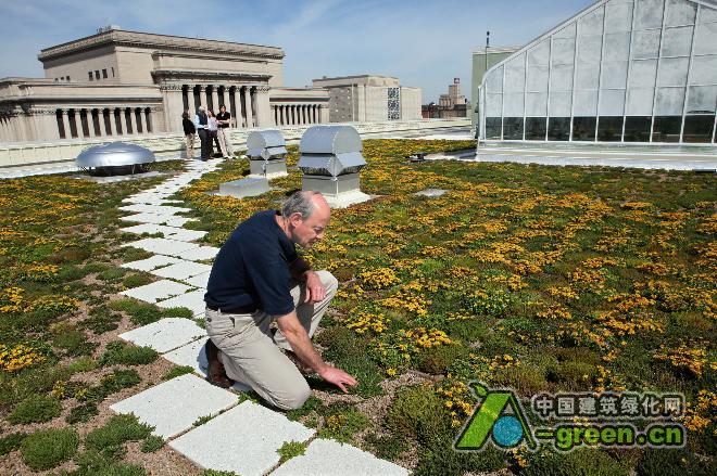 另一个屋顶绿化已在市中心飞快生长 - 位于密尔沃基公共博物馆的屋顶,成千上万的耐旱景天科植物,用自己的微小还闪闪发光的黄色花朵,在春天充份展示着。