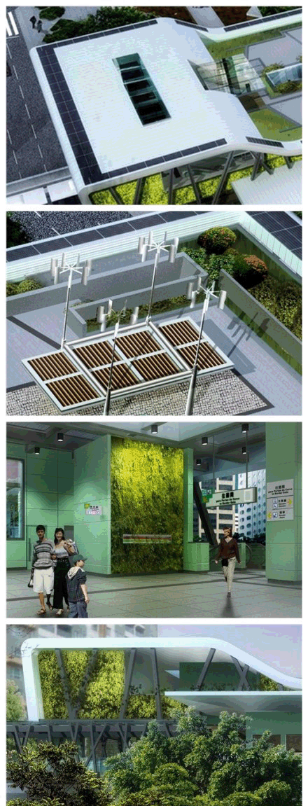 宋玉生公园站以高架方式横跨于宋玉生公园南段,以“园中园”为设计理念,开放的车站屋顶花园可供休憩空间供各人使用。此外屋顶还布置了太阳能风能发电设备,配合垂直绿化的立面,为车站市内降温至于还能减少外界能源消耗,实现节能的目标。